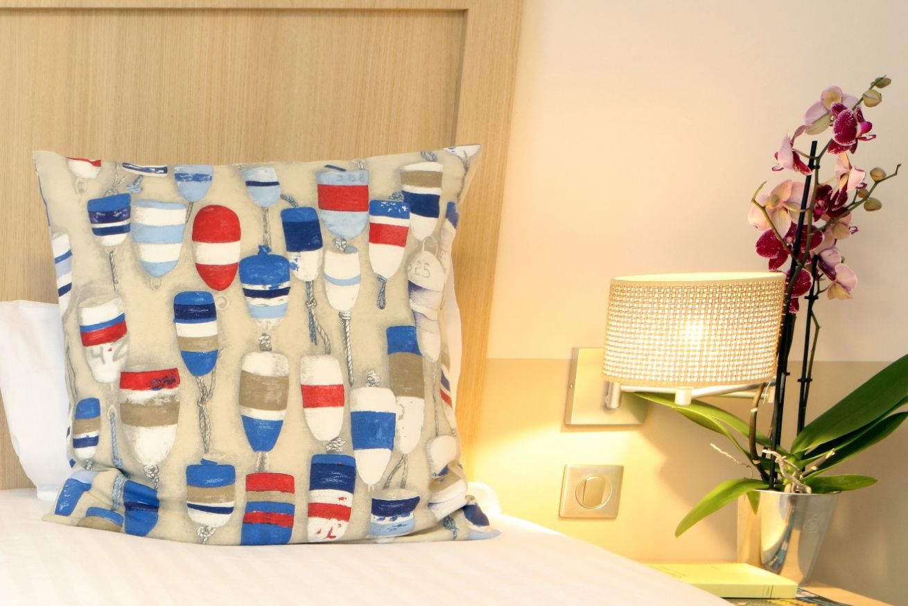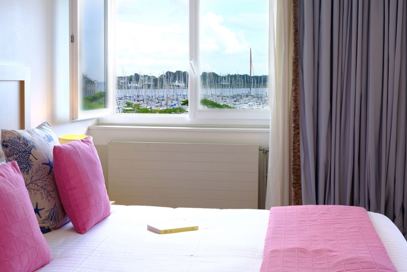 Rénovée récemment, cette double chambre offre un espace de grand confort au 1er étage avec vue imprenable sur le célèbre port de plaisance de la Trinité sur Mer, elle dispose de :